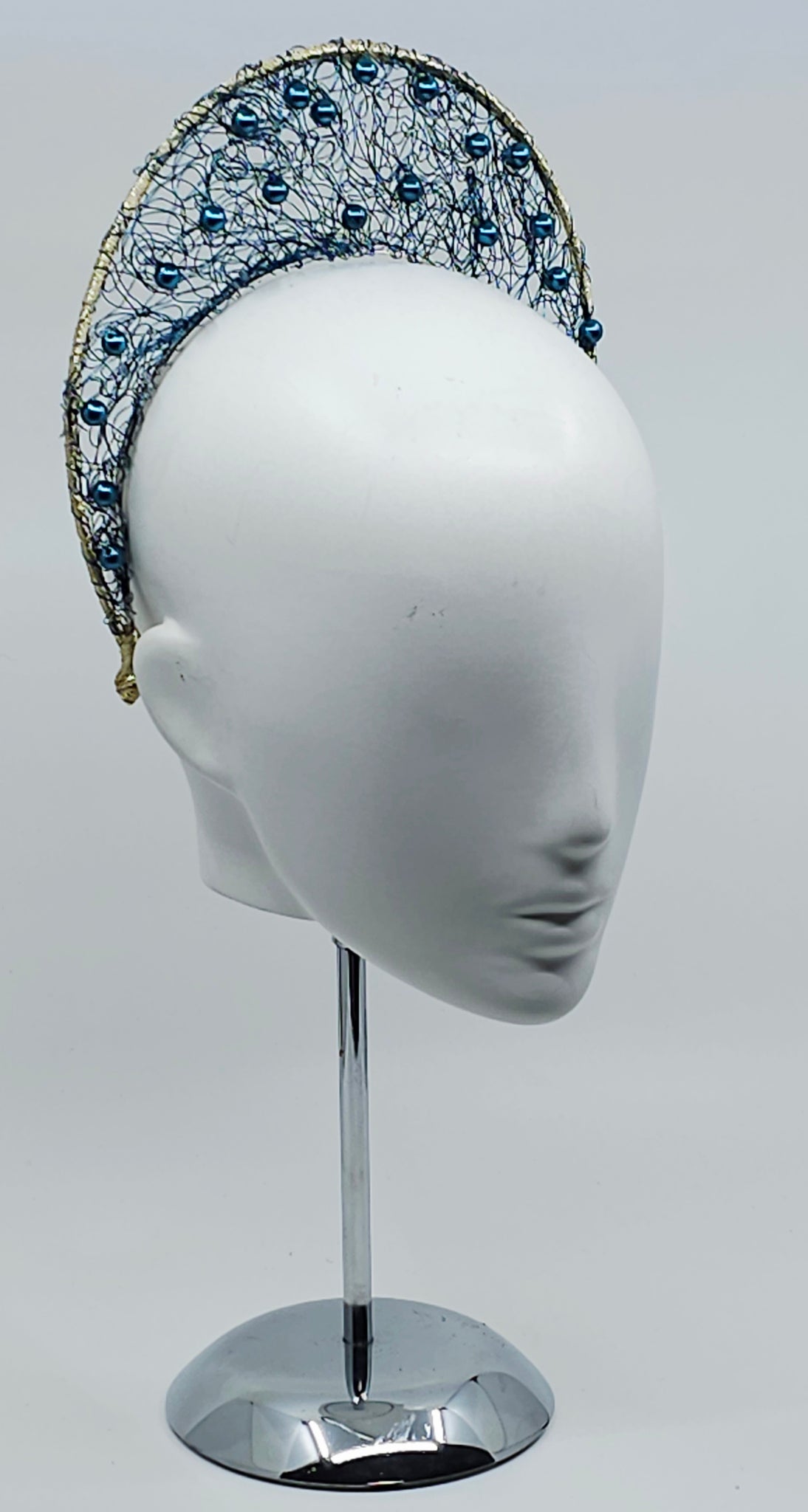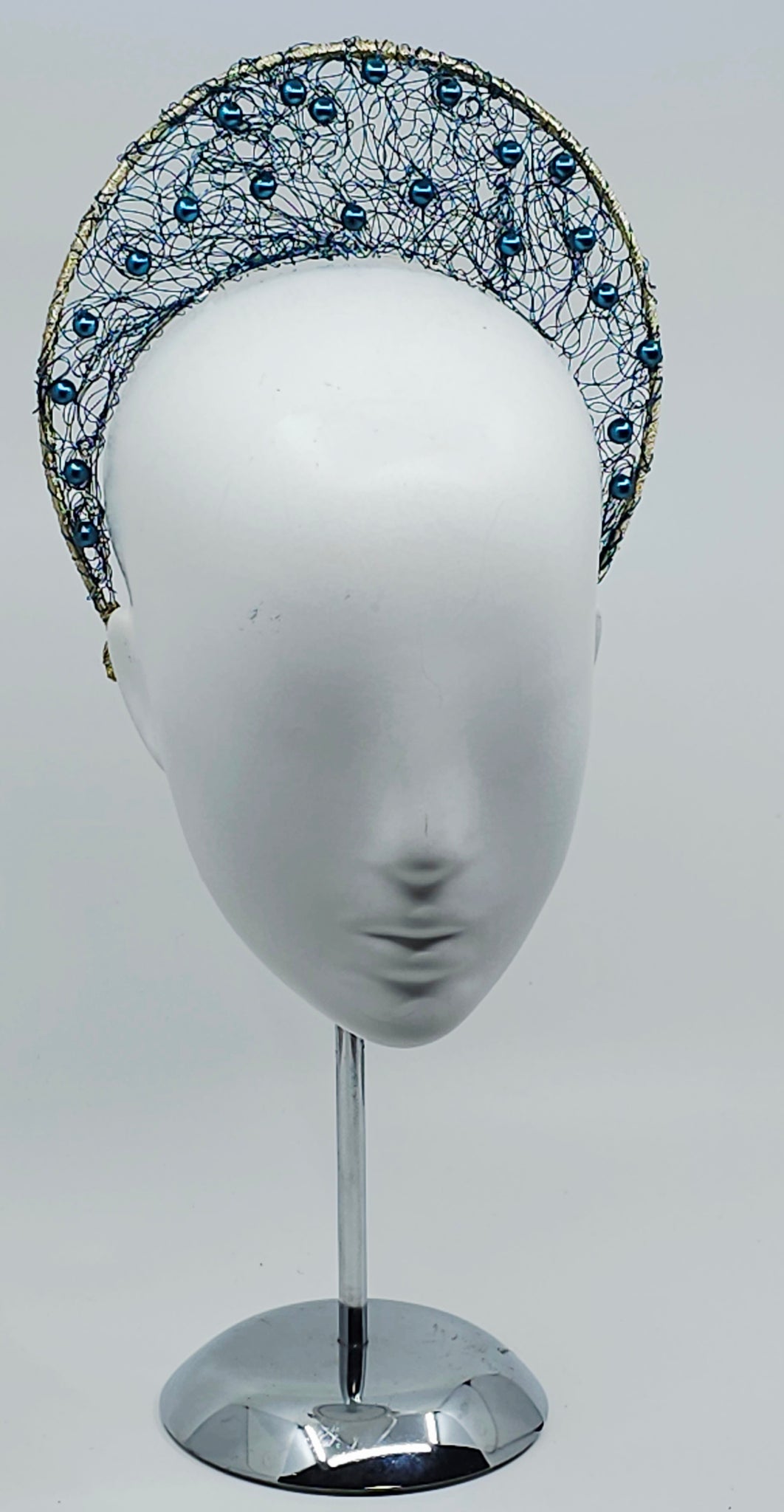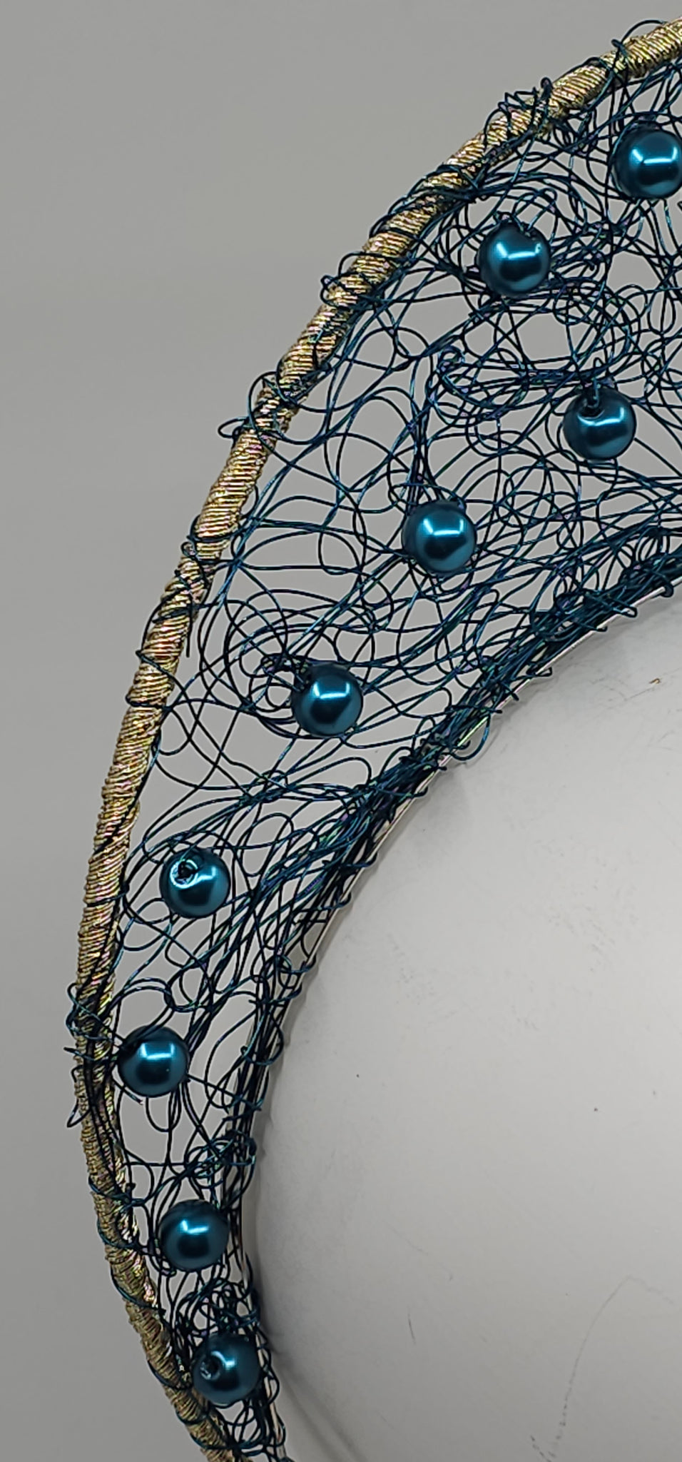 A beautiful shade of Blue/green make this wirework halo really shine💫. The addition matching metallic beads adds that extra bling.